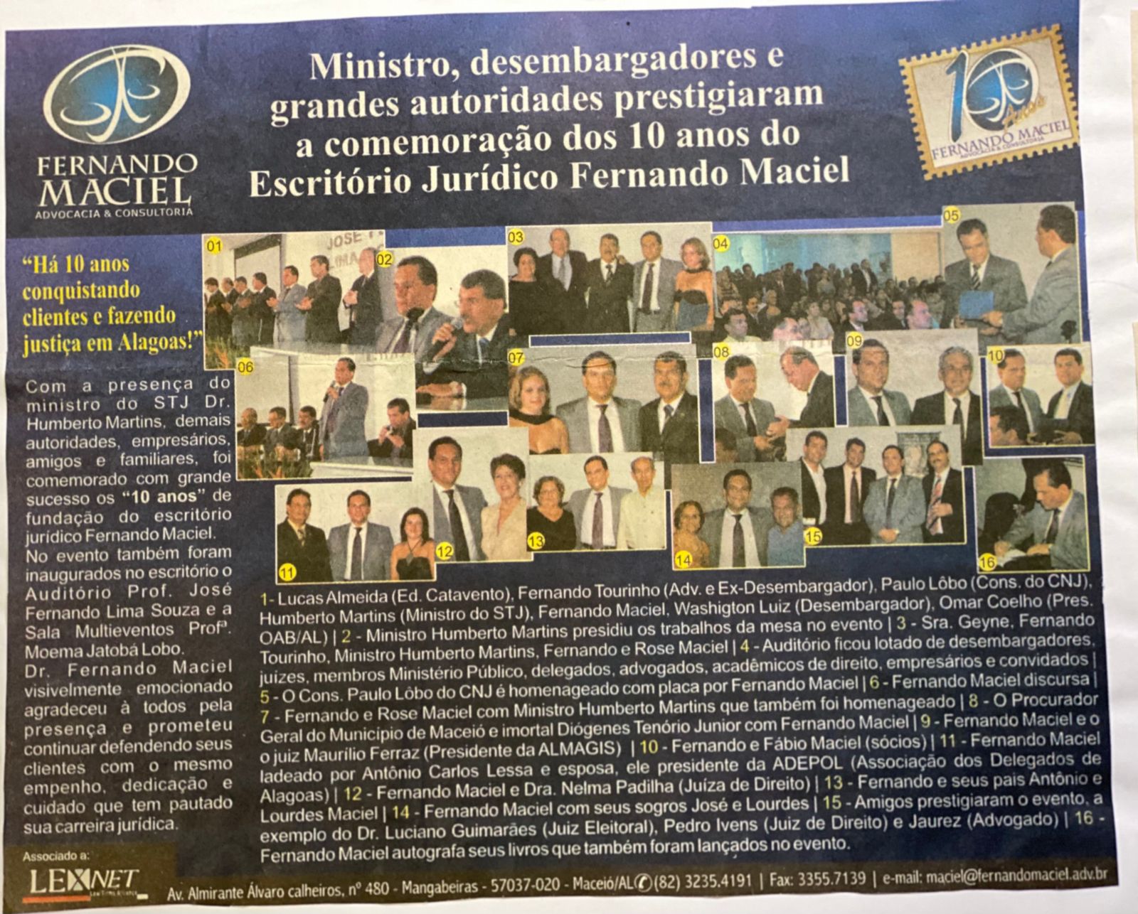 O Escritório Fernando Maciel Advocacia e Consultoria completa 30 anos de dedicação ao direito, construindo uma trajetória marcada por compromisso, excelência e responsabilidade. Fundado pelo advogado Fernando Antônio Barbosa Maciel, o escritório tem se consolidado como referência em Alagoas, prestando serviços de assessoria jurídica para empresas, sindicatos, associações e pessoas físicas.